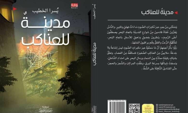 مدينة العناكب رواية صدرت حديثا للكاتبة يسرى الخطيب، عن مكتبة سمير منصور بغزة وتقع في ثلاثمائة صفحة من القطع المتوسط وتتناول في مجملها قصة شاب مناضل “شريف” من اسرة لها تاريخ طويل في هذا الباب، جرى اعتقاله في ظروف غامضة من الجهات الحاكمة في غزة وبعد عام من اعتقاله، يعلن عن وفاته في ظروف يكتنفها الكثير من الشك والغموض، الأمر الذي ينعكس سلبا على حياة العائلة وسمعتها، لتبدأ من بعدها رحلة البحث عن الحقيقة التي يقودها عز الدين، الذي تعرض للإصابة من قبل في إحدى قدميه، ثم من بعد يأتي يوسف الذي ترك حبيبته وابنة عمه” مجد” في بلاد الغربة وعاد للبحث عن الحقيقة ونزع ثوب العار الذي ألصقوه بهم.